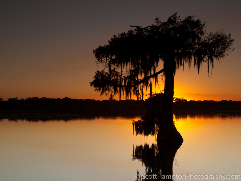 Atchafalaya Basin is known as the "heart of the Louisiana Bayou." Saint Martin Lake is rather a small lake but is very scenic. This tree is known as a Bald Cypress. Adding to the beauty is the Spanish Moss hanging from the branches.