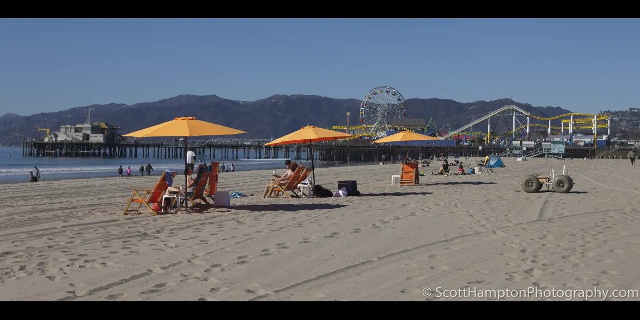 Orange Parasols with the Santa Monica Pier in the Background
