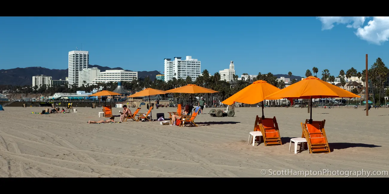 Orange Parasols with Downtown Santa Monica in the Background
