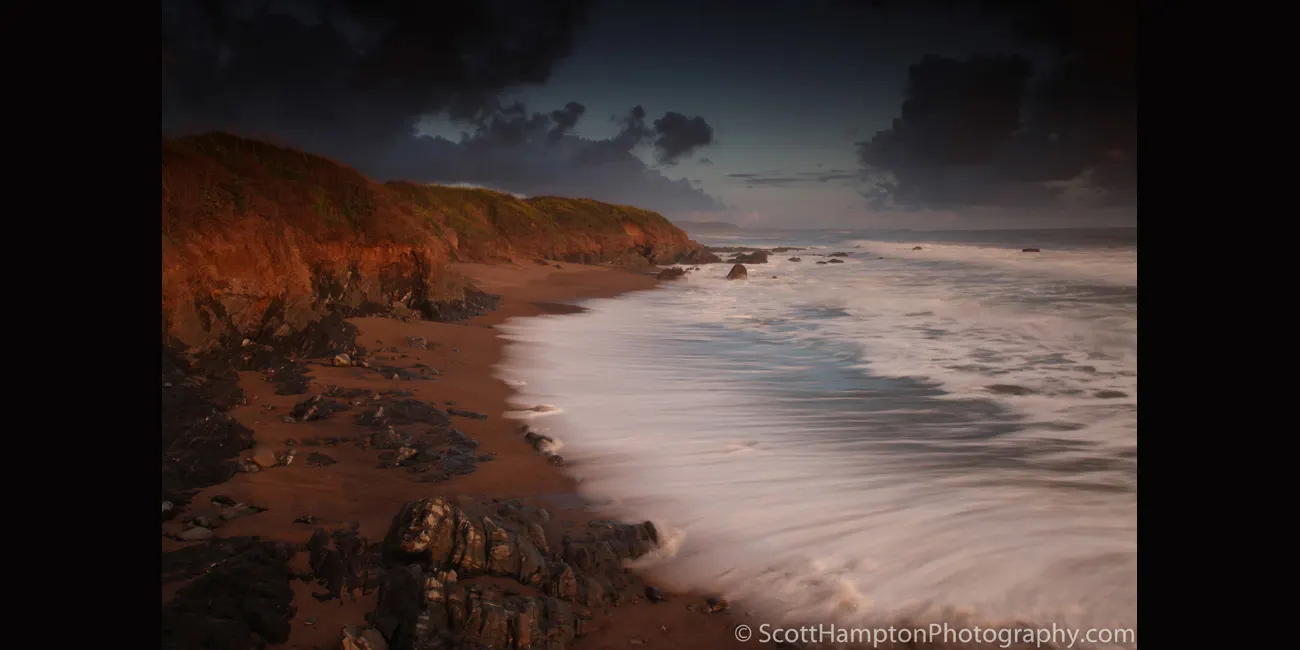 I like the way I caught the wave braking creating the ''frothy'' white line traveling up the picture. This is a 3.2 second exposure (for those who care.)