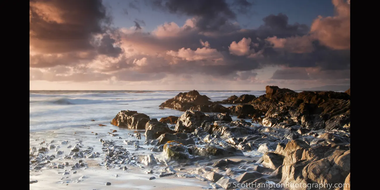 I was originally walking thought these rocks and taking shots pointing towards the sun. I looked off to the right (toward Half Moon Bay) and noticed the (semi) colorful cloud textures. I was very hopeful for a colorful sunset but as usual there was a fog layer (about 20 miles out to sea) blocking that hope. Hey, they do not call this the San Francisco Peninsula for nothing.