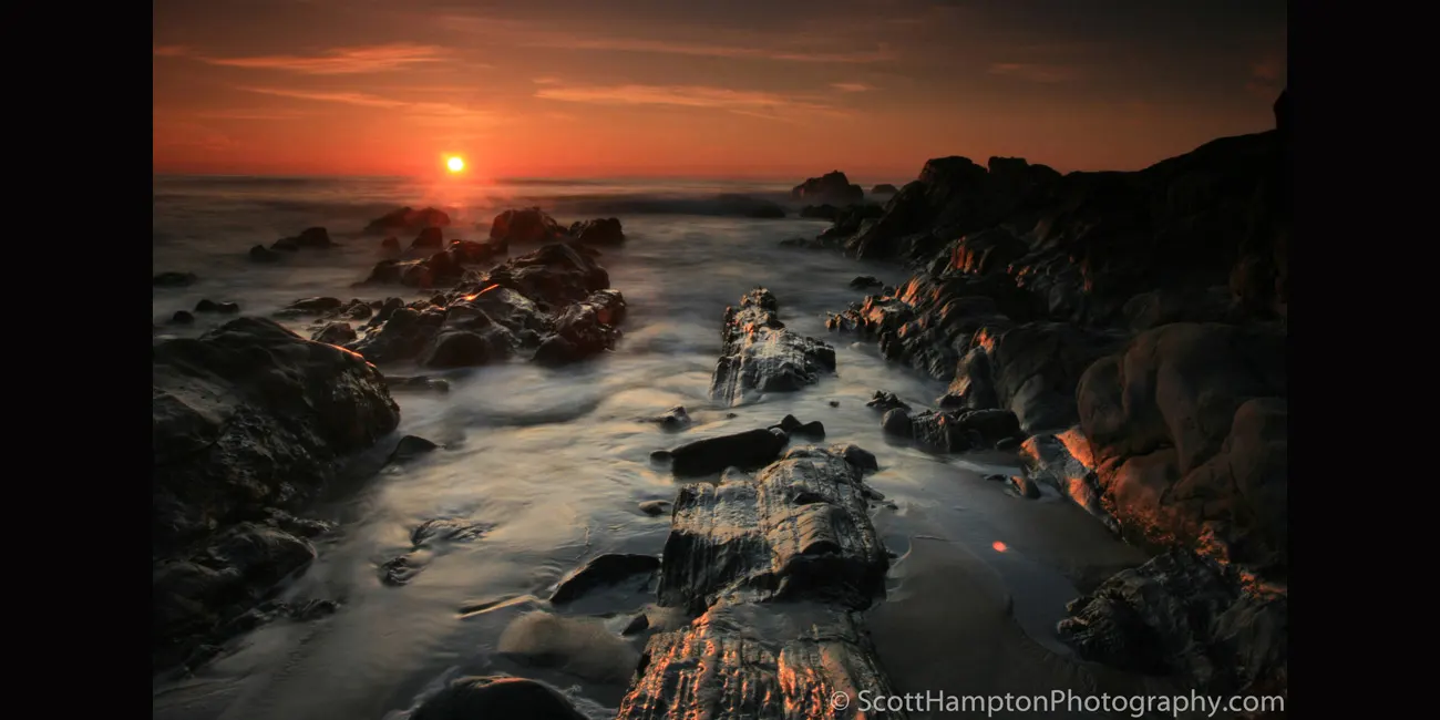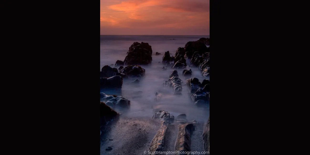 I have gotten infatuated with this area located near Pescadero, California. I find myself visiting it quite often back around the 2010s. I love the way these rocks point out towards the sun as it sets in the winter months. I shot this with a little bit of time exposure to give it ‘’just enough’’ softness. Seemed like it gave me a ‘’rushing in’’ effect.