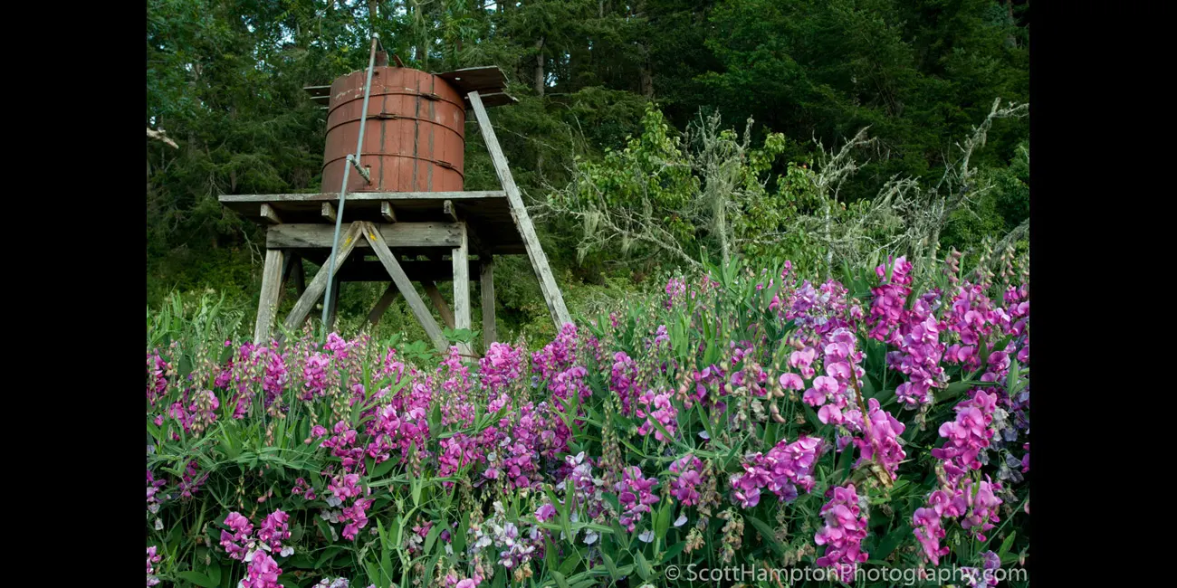 Bean Hollow Road, Pescadero, California. I love all the twisting and turning wood and the light dance on it.