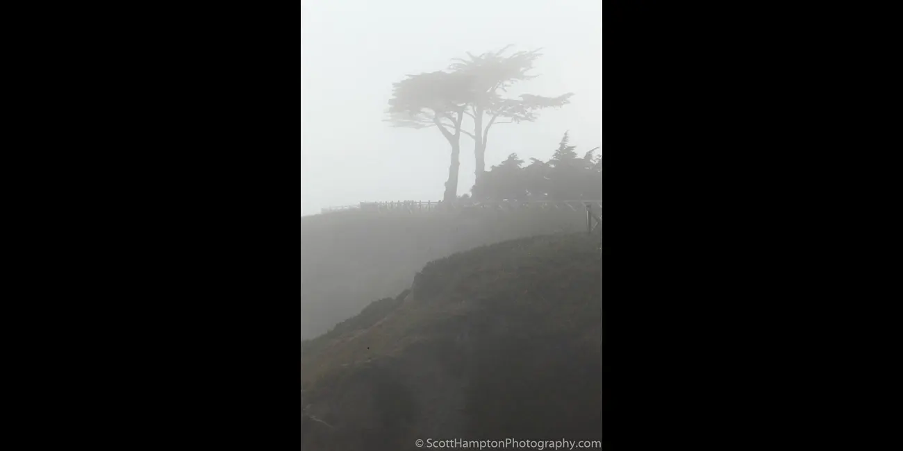 A little fog moving into the Santa Cruz area so one of the first things I look for are trees. Some of the nicest threes in this area are Cypress. With their wind-swept tops and their low profile, they can make fascinating subjects for any photographer.