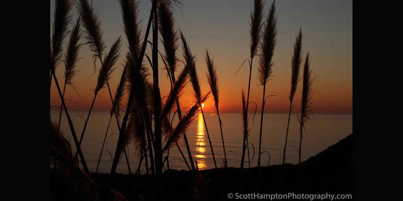 Sunset near Mussel Rock, California, Nov 9, 2011. The Mussel Rock area on the border of Pacifica and Daly City is best-known as a popular hang gliding spot. The silhouette is of Pampas grass native to Northern California.