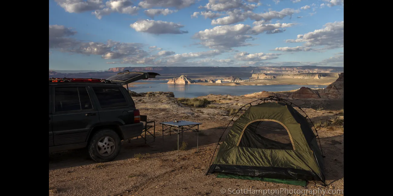 Camping on Alstrom Point looking at Castle Rock from across Lake Powell. I love camping here so magnificent views for both sunset and sunrise. You can go the whole day and see only one or two other vehicles.