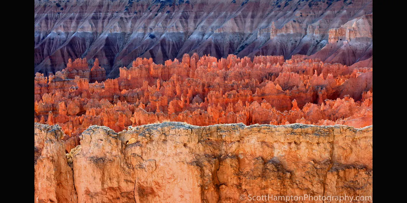 From Bryce Point, one of the most scenic vistas of the full amphitheater and all its wonders amaze the visitor. Bryce Point is famous for its extraordinary sunrises. From here you can watch the tops of hoodoos set alight as if by fire from the first rays of the rising sun. Like fire, the orange light quickly spreads driving shadows from all but the deepest recesses of the amphitheater.