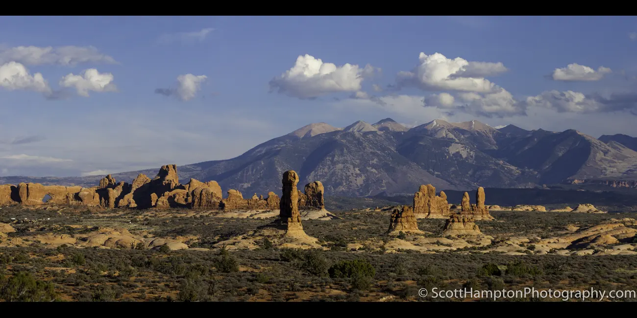 This is just one of over 2,000 arches located in Arches National Park. The park consists of 76,679 acres of high desert located on the Colorado Plateau. The highest elevation in the park is 5,653 feet at Elephant Butte, and the lowest elevation is 4,085 feet at the visitor center. The park receives an average of less than 10 inches of rain annually.