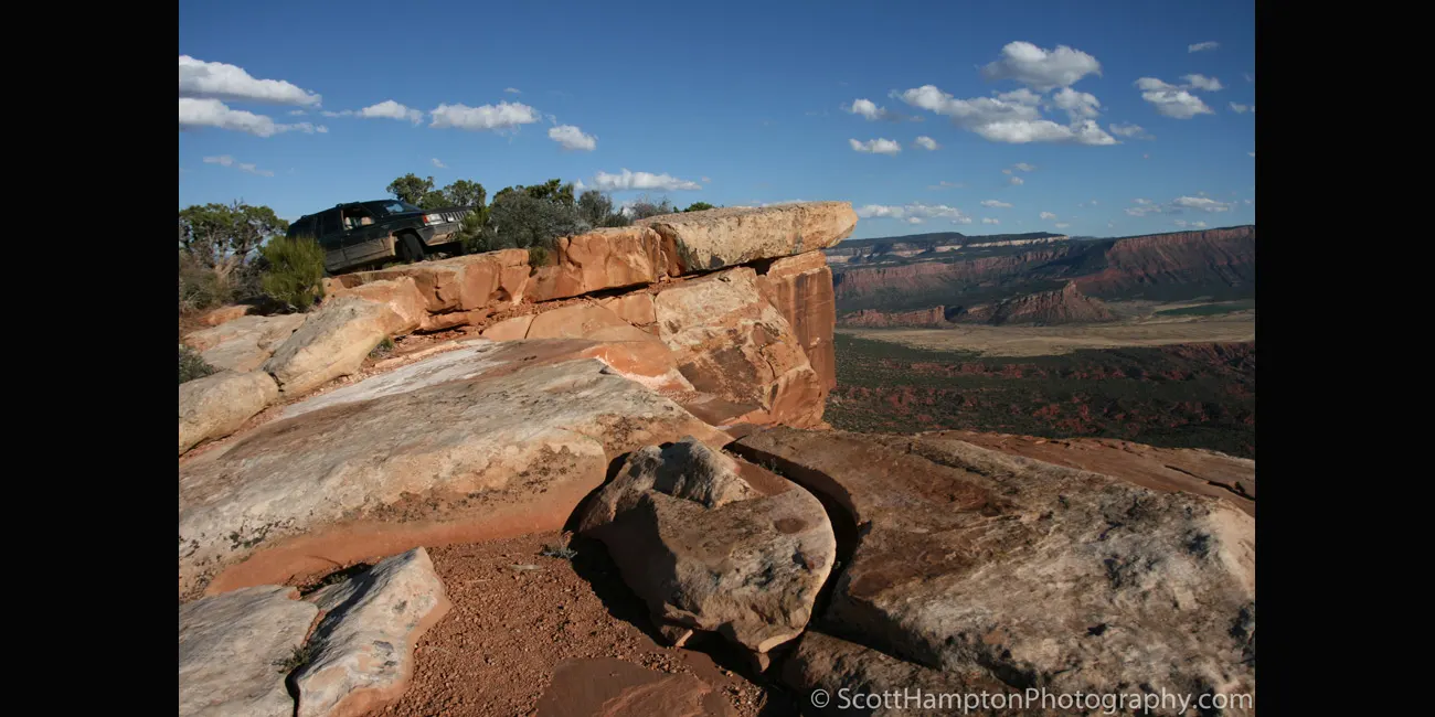 This is a place near Moab, Utah referred to as the top of the world. I am sure there is many places around the world that are referred to as top of the world however this is the closest one to me at this point. This was extremely challenging for my Jeep to climb. I even had to get out a couple times and rearrange rocks to stair step up the climb.