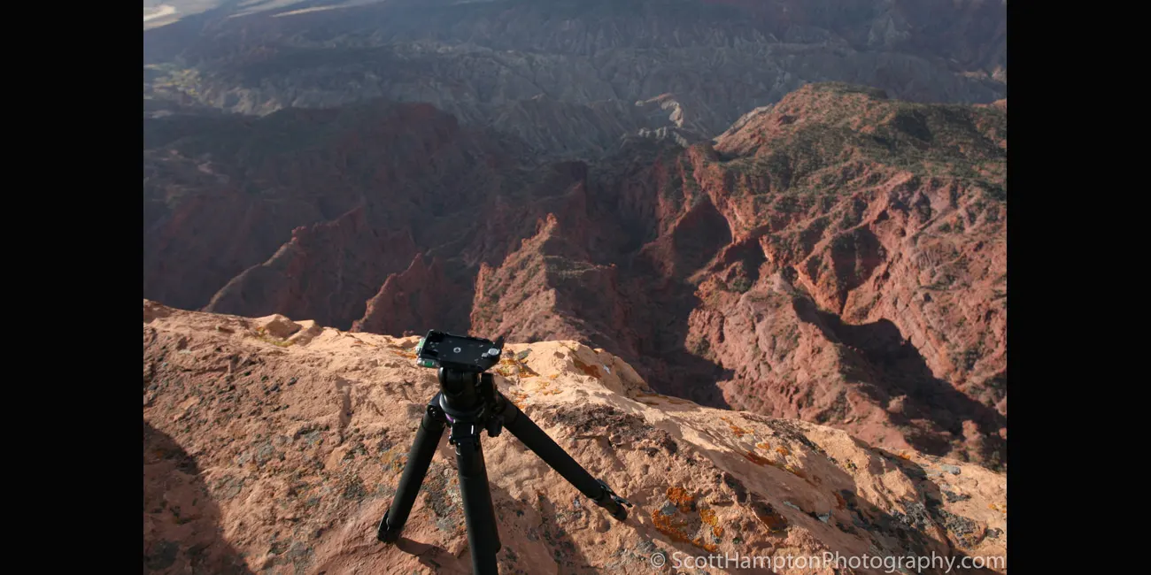 I had to shoot right at the edge of the cliff to get a shot of a rainbow across the valley floor. I have that picture on the main menu for Canyon Country II the ''Rainstorm at the 'Top of the World''' shot. The wind was whipping around with 50 mph gusts. The wind was strong enough to where I could actually feel it shaking the cliffs… at least I think😊 At this point I am laying down because there's no way I'm standing so close to the edge with at least a 200 foot sheer drop. Talk about an adrenaline rush! I did get a nice picture out of it.