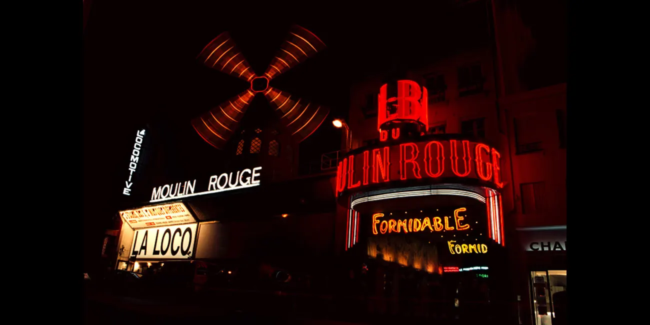 Founded in 1889 the Moulin Rouge is best known as the spiritual birthplace of the modern form of the can-can dance. Originally introduced as a seductive dance by the courtesans who operated from the site, the can-can dance revue evolved into a form of entertainment of its own and led to the introduction of cabarets across Europe. Today, the Moulin Rouge is a tourist attraction, offering musical dance entertainment for visitors from around the world. The club's decor still contains much of the romance of fin de siècle France.