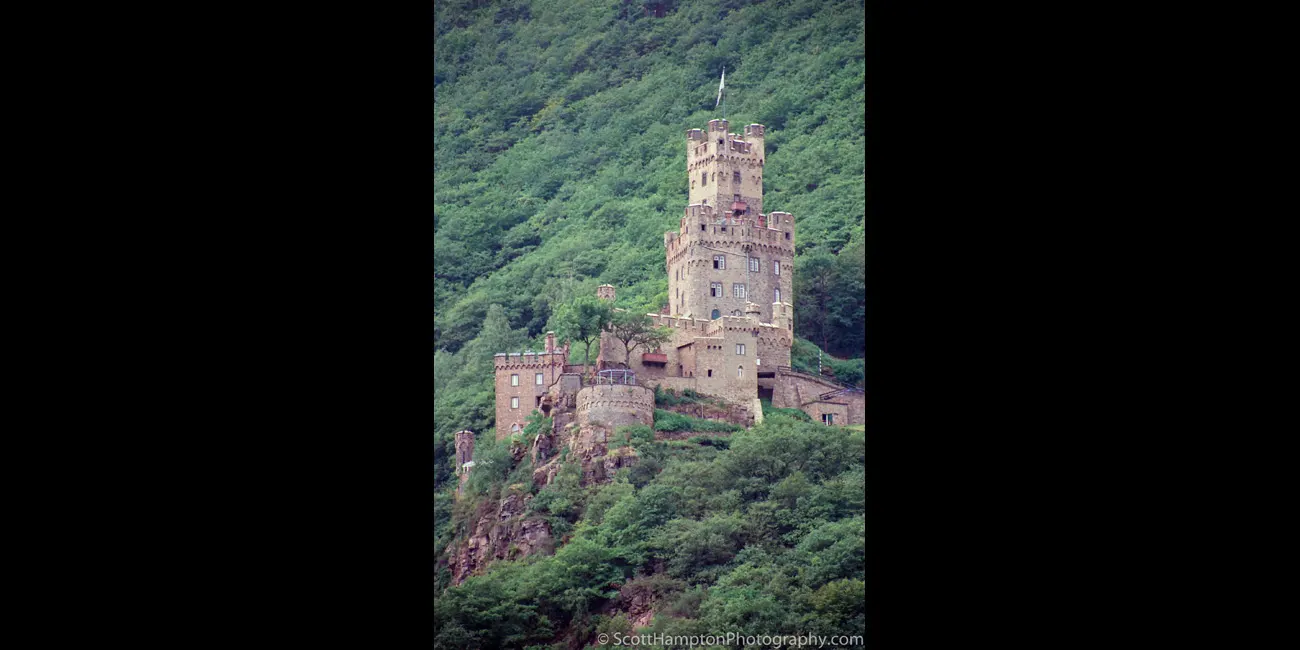 Schönburg Castle remained destroyed by the French and left in ruins for 2 centuries until an American of German ancestry, Mr. Rhinelander, bought and restored the castle. Mr. Rhinelander invested two million Gold Marks into the restoration until 1914.