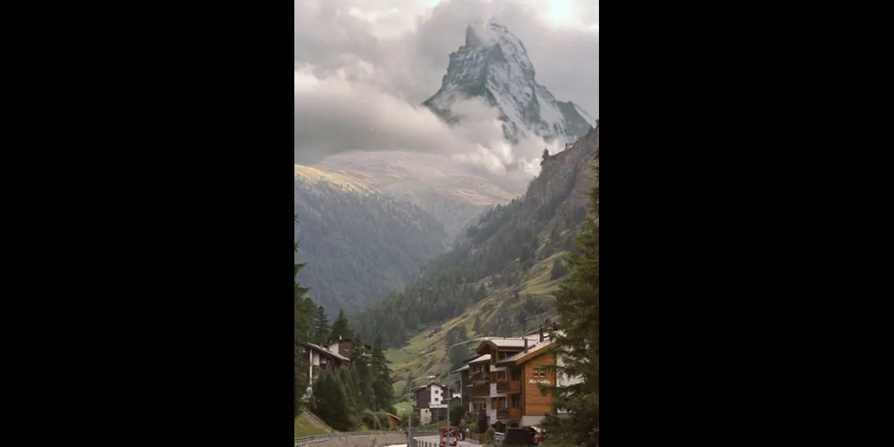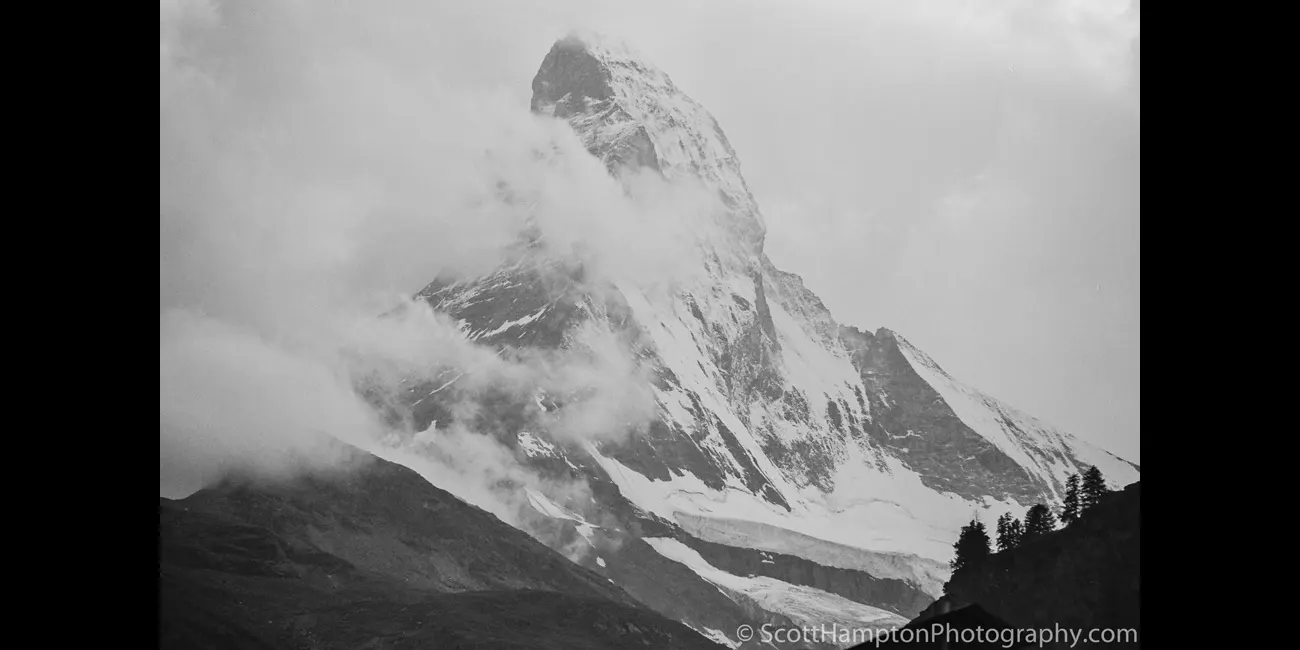 On the southern edge of Zermatt (village) looking up at the Matterhorn.