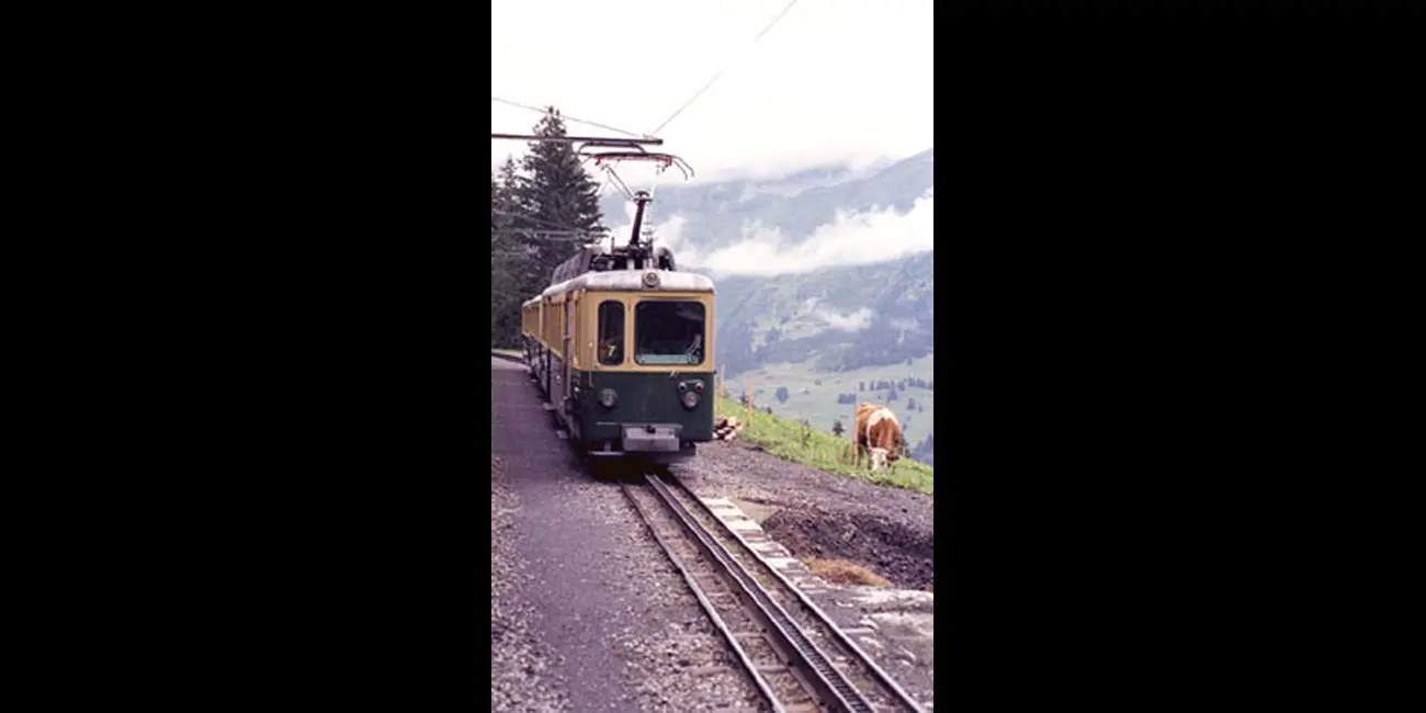 Taking one of Switzerland's famous Cog trains from Grindelwald to Wengen. I saw this cow as we were ascending up the east side of the Lauterbrunnen valley. If you notice, there is third rail that is “geared” because the assent is so steep the train would just slip on standard rails. There is another train that ascends the west side of the Lauterbrunnen valley that ends up by the summit of the famous Jungfraujoch mountain.
