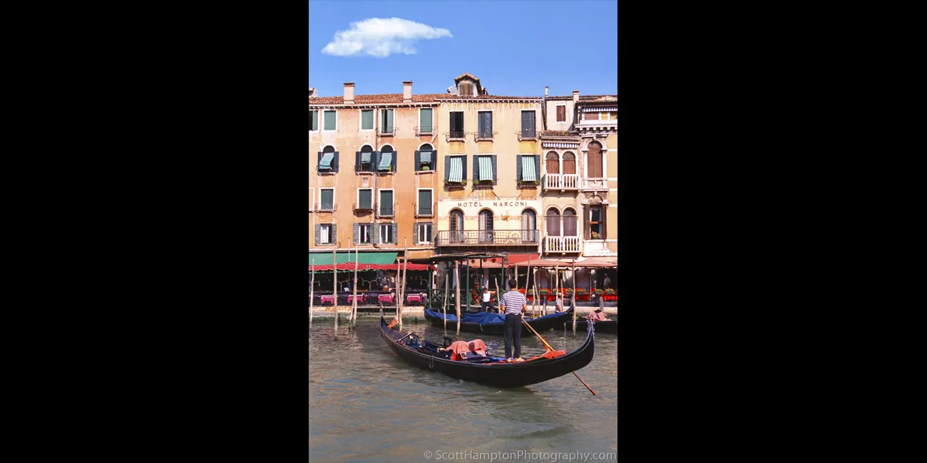 I was setting up to take a picture of this gondolier who just docked his gondola. I am a landscape photographer and do not usually shoot critters (that includes humans.) However, he noticed I was setting up for a shot in got back into his gondola because he thought that is what I wanted to shoot. I did not have the heart to tell him that I wanted to shoot his gondola without him, so I went ahead and took the shot. Guess what, it made a much nicer capture with the gondolier so that is what I posted.